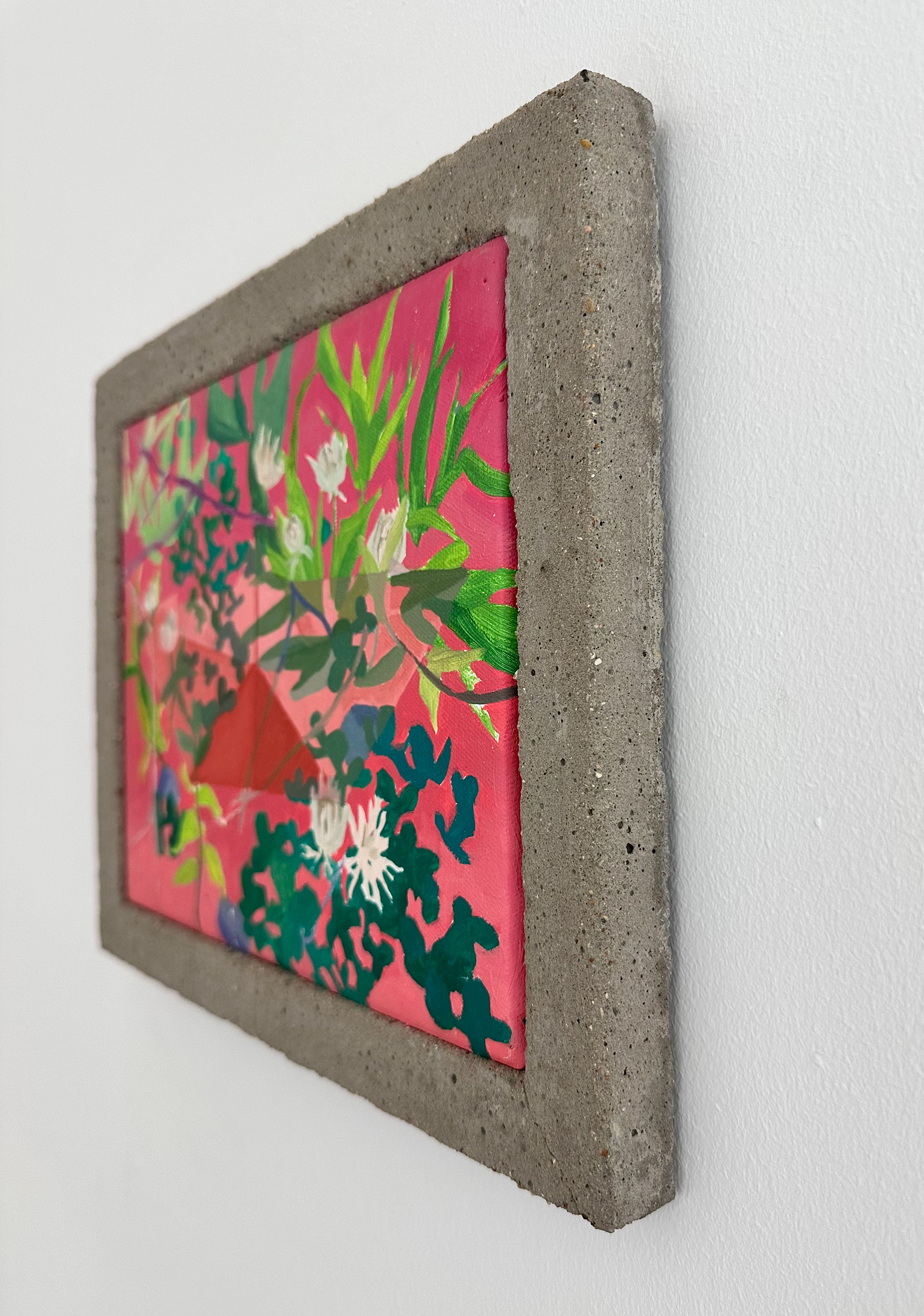The Sidewalk, 12 x 10 inches, oil on canvas in concrete frame